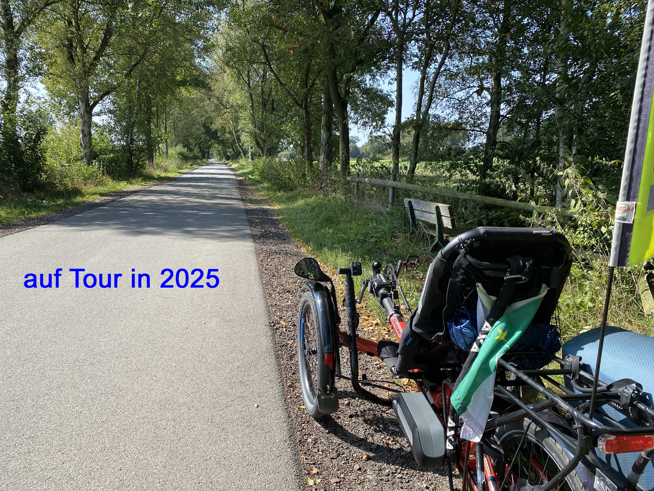 Mein Liegedreirad, zärtlich SCORPI genannt, ist von HP Velotechnik aus Kriftel bei Frankfurt. Die Modellbezeichnung lautet Sorpion FX. Es trägt mich sicher und gelassen durch die Landschaft, Städte und Dörfer.